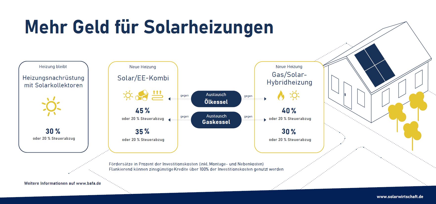 Verbrauchern droht eine teure Heizsaison, die Gas- und Ölpreise steigen. Ursachen sind unter anderem die jährlich steigenden CO2-Preise, wie sie von der Bundesregierung vor zwei Jahren gesetzlich verankert wurden. Immer mehr Eigenheimbesitzer nehmen Heizkostensteigerungen zum Anlass dafür, in eine Solarheizung zu investieren. Unterstützt werden sie dabei von derzeit attraktiven Förderkonditionen, die auch eine Nachrüstung bestehender