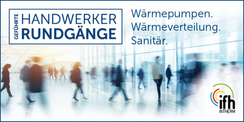 Die Veranstalter der IFH/Intherm (Messegesellschaft GHM und die SHK-Fachverbände) bieten gemeinsam mit der Fachzeitschrift SBZ geführte Handwerker-Rundgänge zur Fachmesse an. An den ersten drei Messetagen stehen auf dem Programm: Wärmepumpen, Wärmeverteilung und Heizungsperipherie sowie alles rund um Sanitär. Jeder Rundgang dauert etwa 1,5 Stunden.