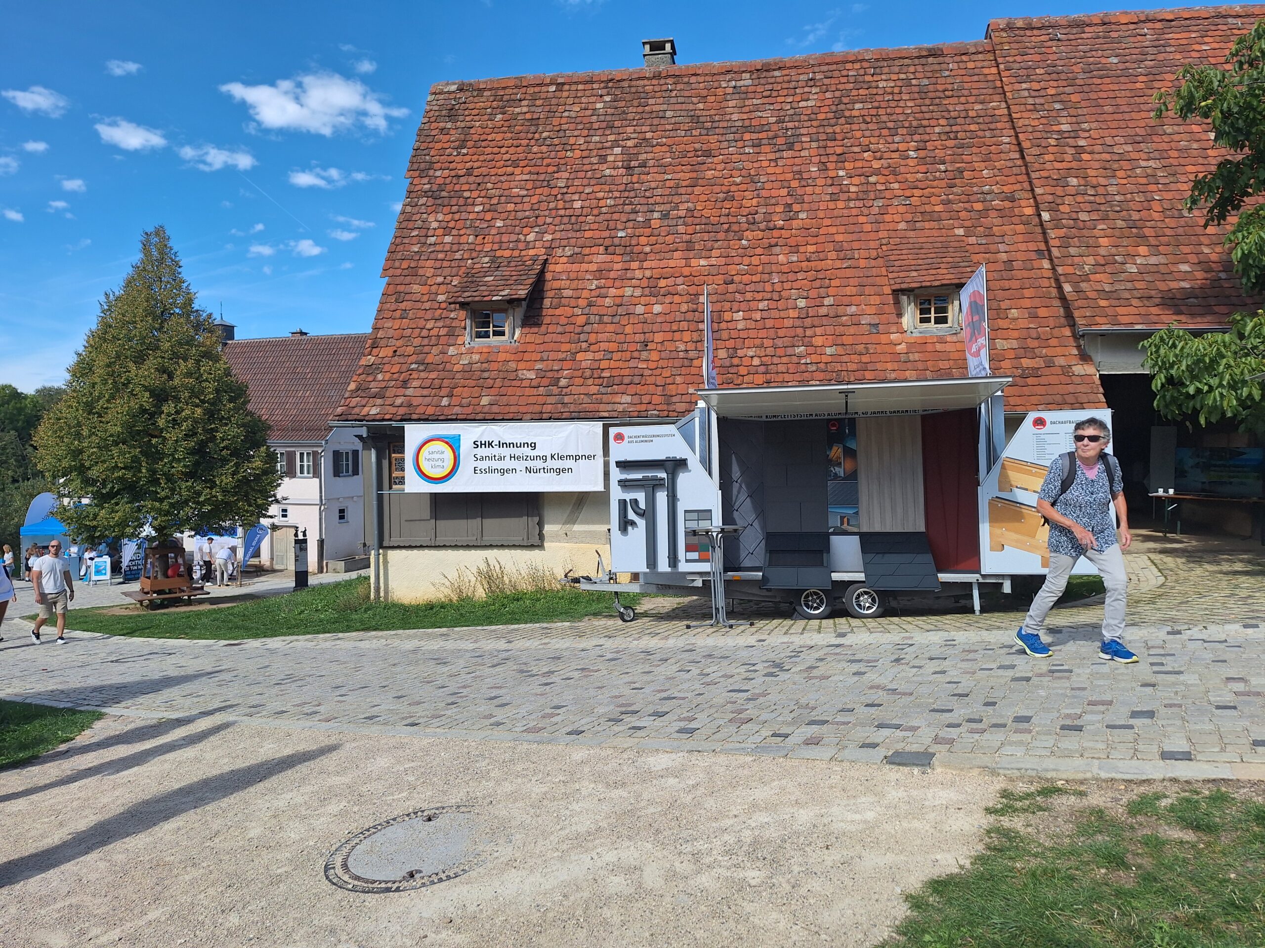 Mit den Präsentationsanhängern ihrer Partnerfirmen Prefa und Bosch zeigte die SHK-Innung modernste Aluminium-Dach- und Fassadentechnik sowie zukunftsweisende Heizsysteme.